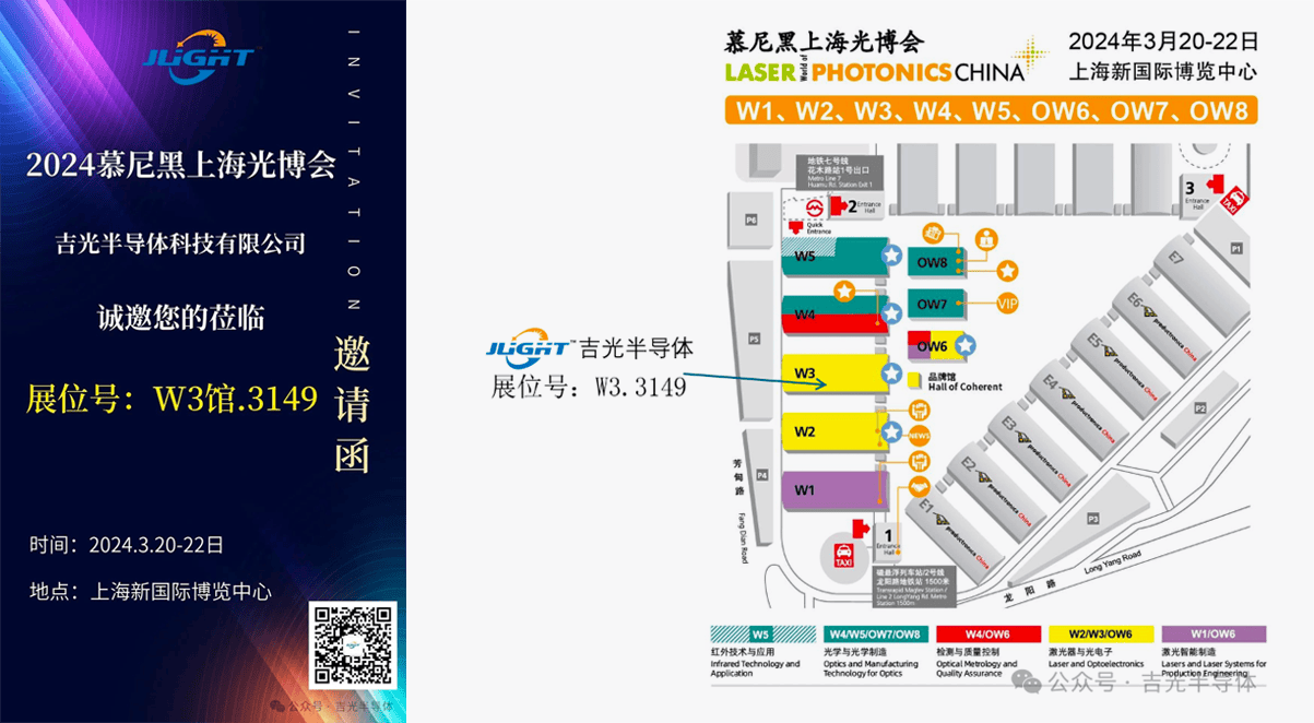 2024年,慕尼黑上海光博会将于3月20-22日在上海新国际博览中心盛大举行。慕尼黑上海光博会以国际化的视角呈现光电行业的全方位产品内容,专为满足中国市场的独特需求。吉光半导体首次亮相本届展会,展位号为W3馆3149,期待您的莅临。